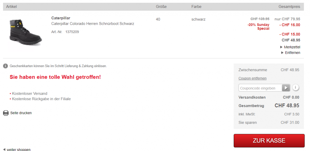 So erhält man beispielsweise den Caterpillar Colorado für CHF 48.95