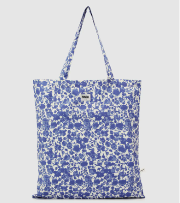 Die Tasche ist blau geblümt und eignet sich ideal auch als Badi bzw. Strandtasche. Sie besteht zu 100% aus organischer Baumwolle.