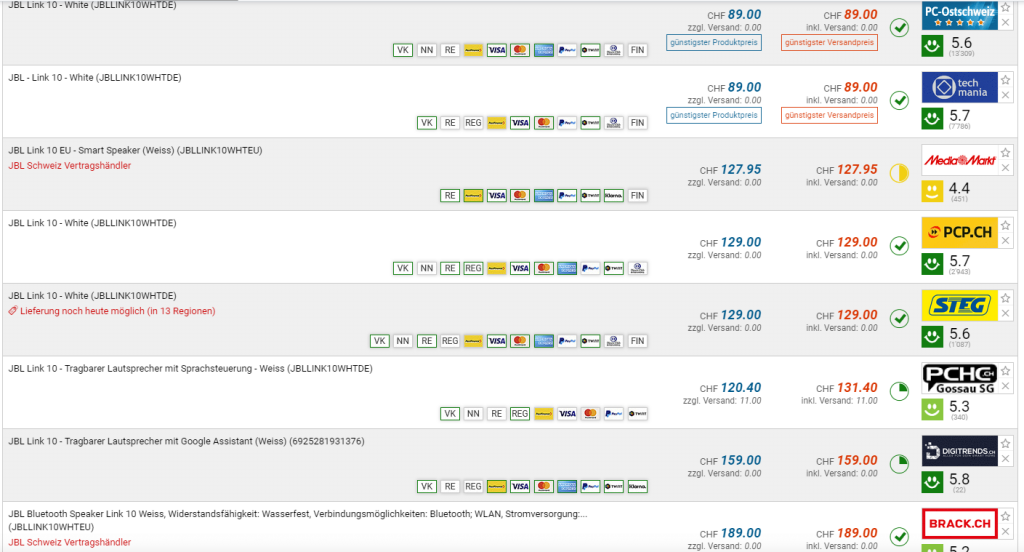 Bei techmania erhält man den Bluetooth Speaker JBL Link 10 in der Farbe weiss derzeit für CHF 89.- Bisheriger Bestpreis war bei CHF 99.- Zweitbester Preis beträgt CHF 127.95