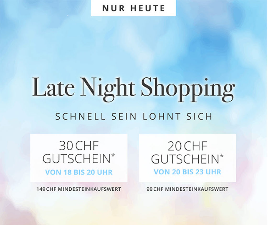 Von 20 bis 23 Uhr erhält man CHF 20.- ab CHF 99.- Rabatt.