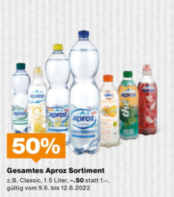 Auch interessant: am Wochenende gibt’s 50% Rabatt auf das ganze Aproz-Sortiment: