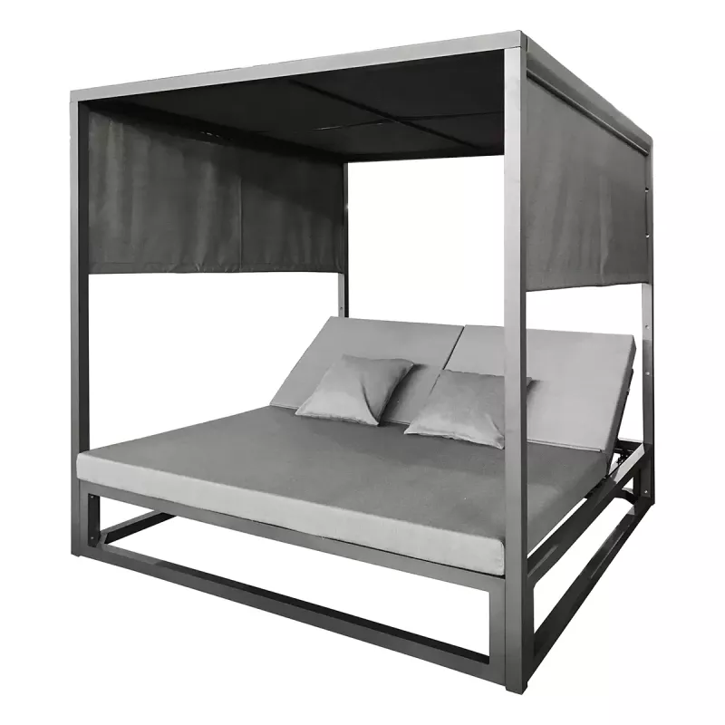 Das Gartenlounge-Bett Monza #105 ist die perfekte Ergänzung für Ihren Outdoor-Bereich. Das Gestell aus pulverbeschichtetem dunkelgrauem Aluminium sorgt für Stabilität und Langlebigkeit. Die Textilene in dunkelgrau bietet optimalen Komfort und ist gleichzeitig wetterbeständig. Mit den inkludierten grauen Kissen lädt dieses Lounge-Bett zum Entspannen und Relaxen ein. Mit den Massen 198 x 198 x 200 cm bietet es genügend Platz für gemütliche Stunden im Freien.