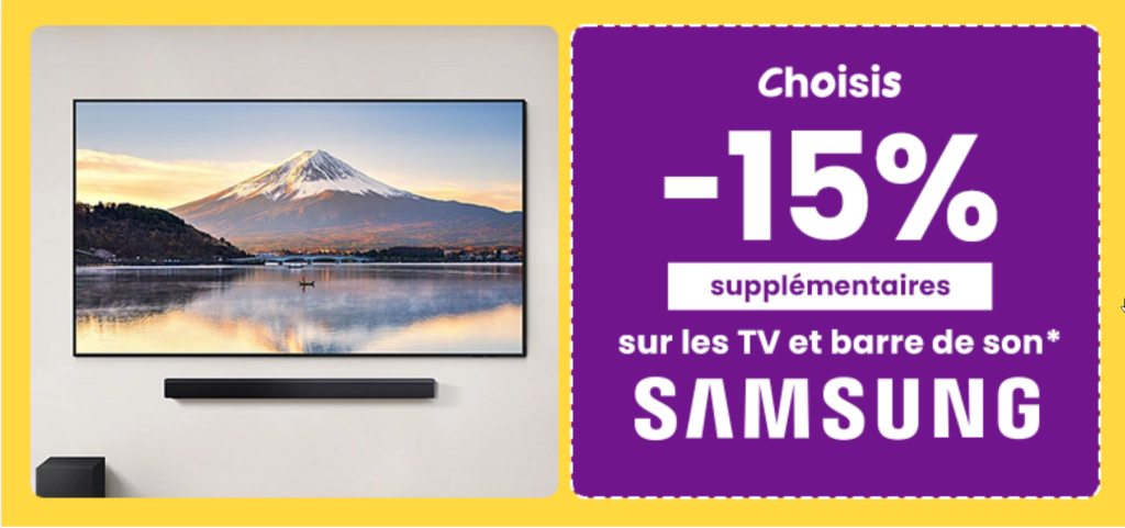 Obtenez des réductions incroyables sur les produits Samsung, avec -15% supplémentaires sur une sélection de télévisions et barres de son !