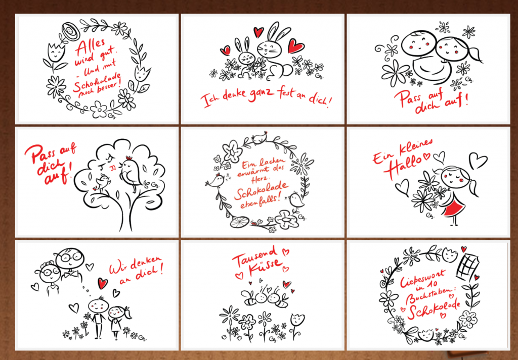 Die Schoggi wird in ca. 10 Tagen versandt, es stehen mehrere Kartenmotive zur Verfügung.