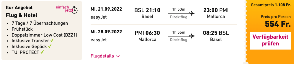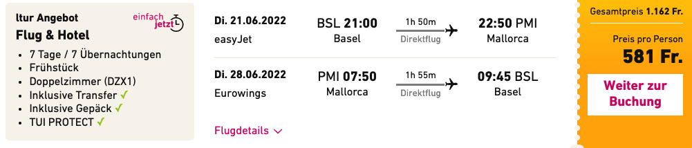 Bei Ltur bucht man derzeit eine Woche im 4-Sterne Hotel President Alcudia in Mallorca mit Frühstück und Flügen von Basel ab CHF 554.- pro Person im September. Im Juni gibt es Angebote ab CHF 580.- pro Person.