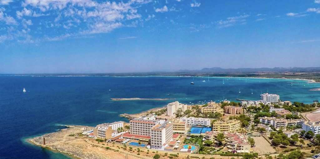 Das 3-Sterne Hotel liegt im südlichen Teil der Baleareninsel Colònie de Sant Jordi mit einem kilometerlanger Sandstrand direkt vor dem Hotel und der schönste Naturstrand Mallorcas Es Trenc ist auch nur zehn Gehminuten entfernt.