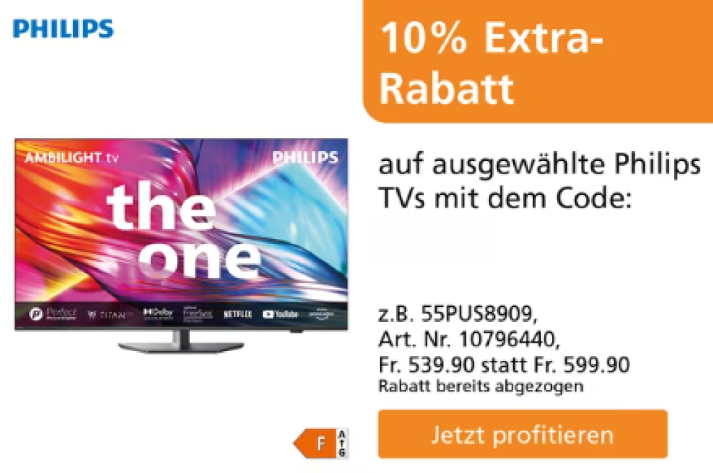 Bei Fust könnt ihr nur noch bis am 21.4., solange wie Vorrat, von 10 % Extra-Rabatt mit dem Rabattcode auf ausgewählte Philips TVs profitieren. Hierzu habe ich ein paar Beispiele herausgesucht, die interessant sein könnten – es sind einige neue Bestpreise dabei.