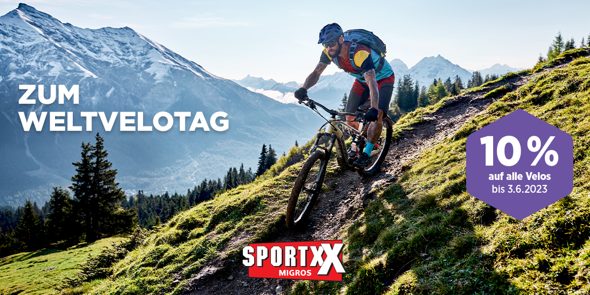 Zum Weltvelotag gibt es bei SportX vom 1.6. bis 3.6.2023 10% auf alle Velos. Ausgenommen von der Aktion sind bereits reduzierte Artikel.