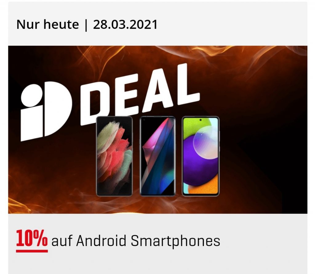 Wer gerade ein neues Android-Handy benötigt, sollte heute unbedingt zuschlagen, es gibt nämlich 10%.