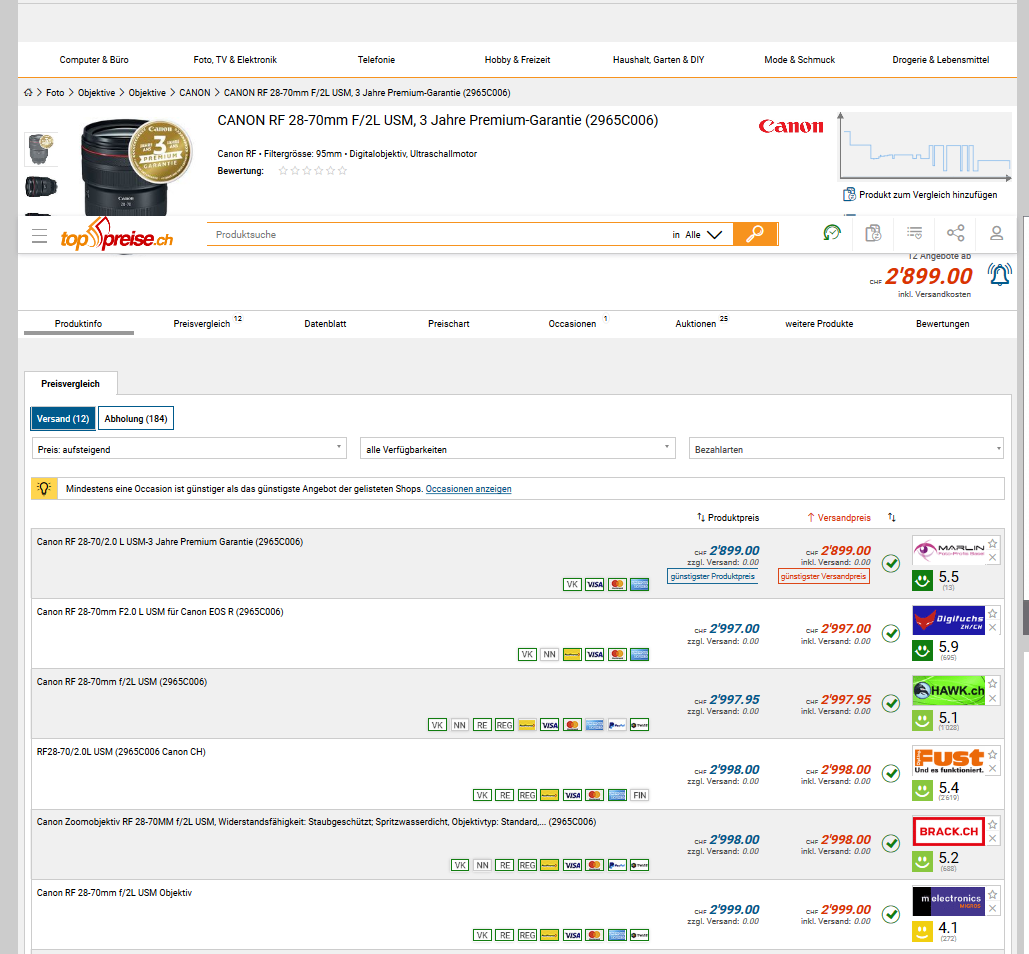 2276.10 CHF // Vergleich Toppreis 2549 CHF