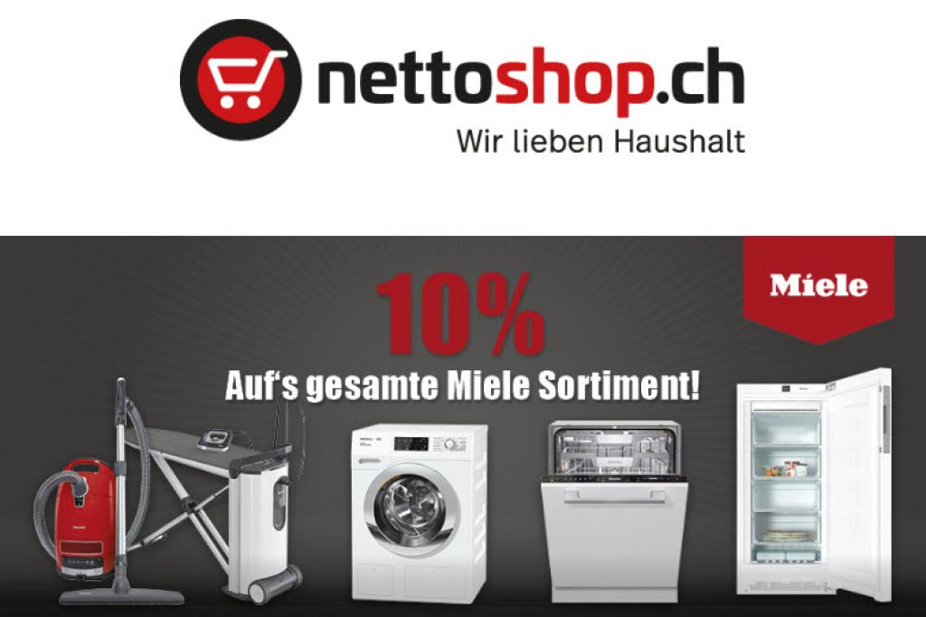 Bei Netteoshop gibt es von Heute bis am Freitag 10% auf das gesamte Miele-Sortiment.