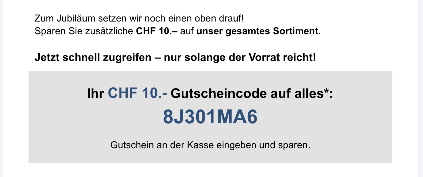 Danke! Hab mir damit gleich den Virenschutz, für Fr. 33.90 um ein Jahr verlängert.
