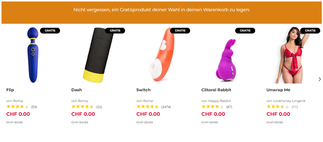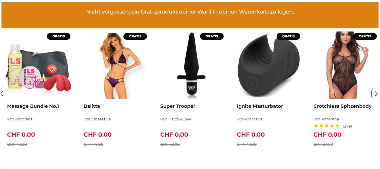 Bei Amorana könnt ihr euch aktuell diverse gratis Toys zu eurer Bestellung sichern! Wenn ihr für mind. 150 Franken einkauft, könnt ihr aus diversen Freebies auswählen: