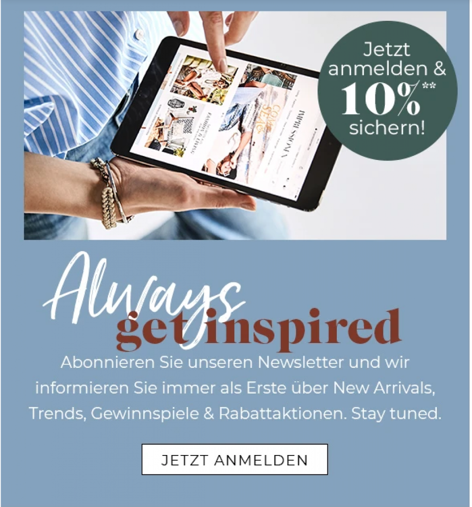 Bei einem Newsletter Abo erhält man 10% Rabatt auf die nächste Bestellung. Über diese Aktion ist kein Ablaufdatum bekannt.