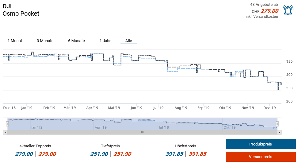 Bei digitec gibt es heute mit dem Code DJI2019 10% Rabatt auf DJI. So gibt es zum Beispiel: DJI Osmo Pocket für 251.10 CHF, zweitbester Preis 279.90 CHF