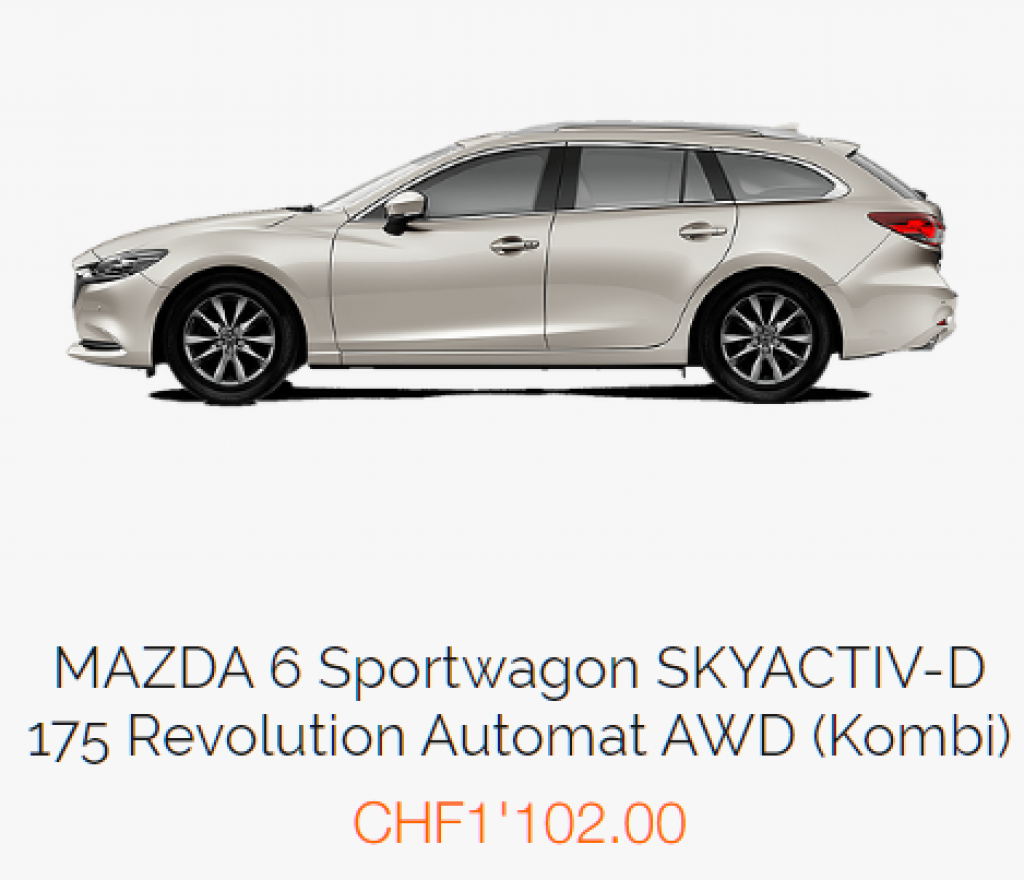 Die besten Deals von heute anzeigenAls Neukunde profitieren Sie von einer einmaligen Aktion. Sie erhalten 10% auf Ihr erstes Abo! Die Aktion gilt für Buchungen mit Gutscheincode, welche bis am 31.12.19 bei uns eintreffen. Die Aktion gilt für alle Fahrzeuge welche nicht bereits in einer Aktion sind, diese Aktion ist nicht kummulierbar und gilt nur für eine Buchung pro Kunde.