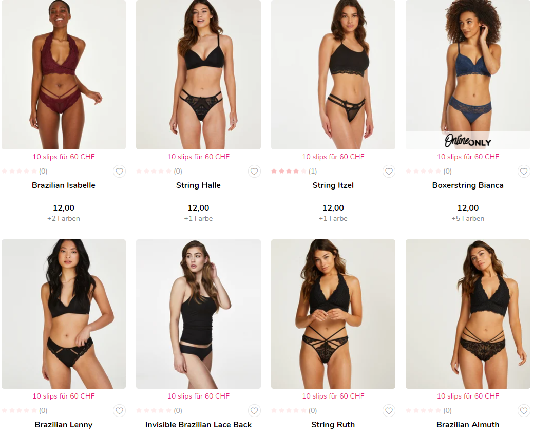 Wenn man 10 Slips in den Warenkorb legt, erhält man sie für CHF 60.-.
