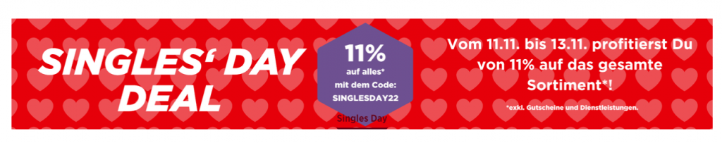 Der Gutscheincode lautet SINGLESDAY22 und nicht SINGLESDAY11.