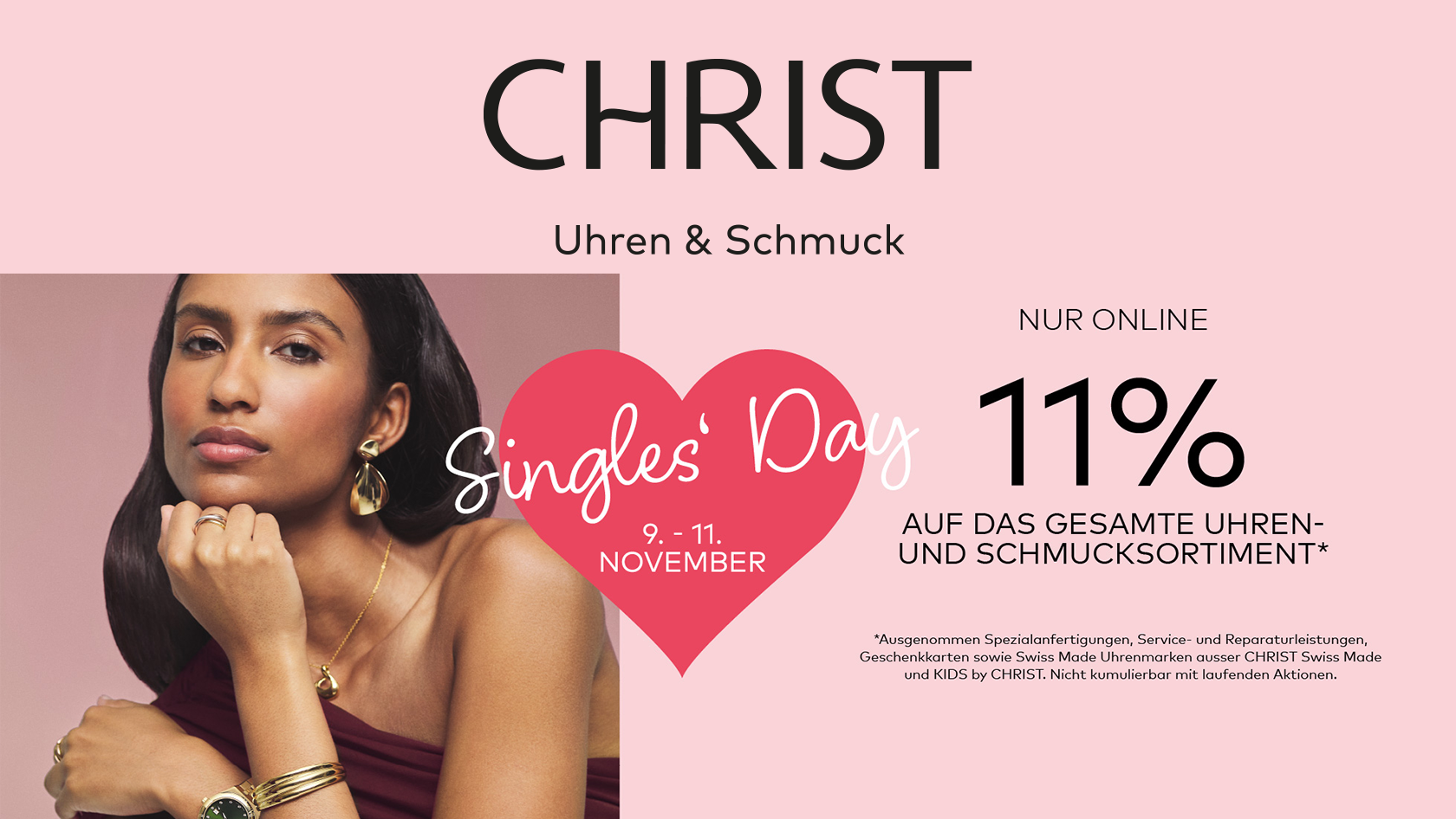 Bei CHRIST Uhren und Schmuck profitieren Sie von 11% Rabatt auf das gesamte Uhren- und Schmucksortiment, ausgenommen Swiss Made Uhrenmarken.