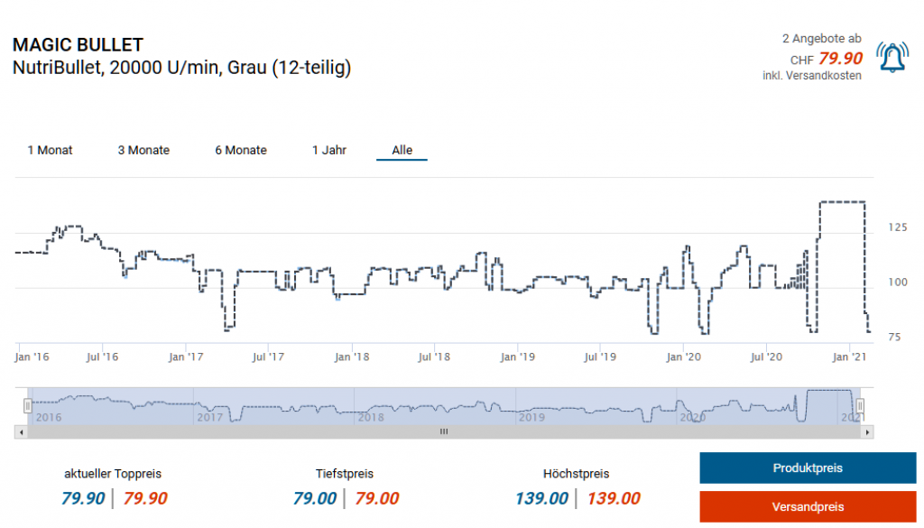 Bei melectronics gibt es noch bis morgen Montag das 12-teilige Set von Nutribullet „Magic Bullet“ zum Aktionspreis von CHF 79.90. Es liegt somit gemäss toppreise fast bei Bestpreis. Mit erstmaliger Anmeldung zum Newsletter sogar darunter.