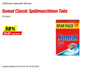 Ab morgen gibt es wieder 150 Somat Tabs für 14.95 CHF bei Aldi.