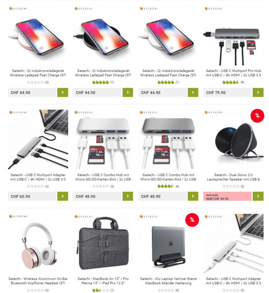 Insgesamt gibt’s bei Apfelkiste im Moment 93 Satechi-Artikel. Vom Quick-Charger bis zur Laptop-Tasche ist alles dabei: