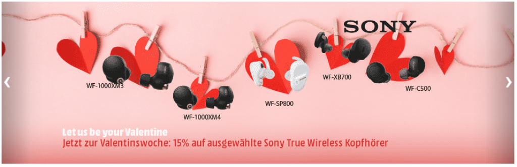 Aktuell gibt es bei Media Markt auf ausgewählte SONY Kopfhörer 15% Rabatt. Ist eine Valentine Aktion.