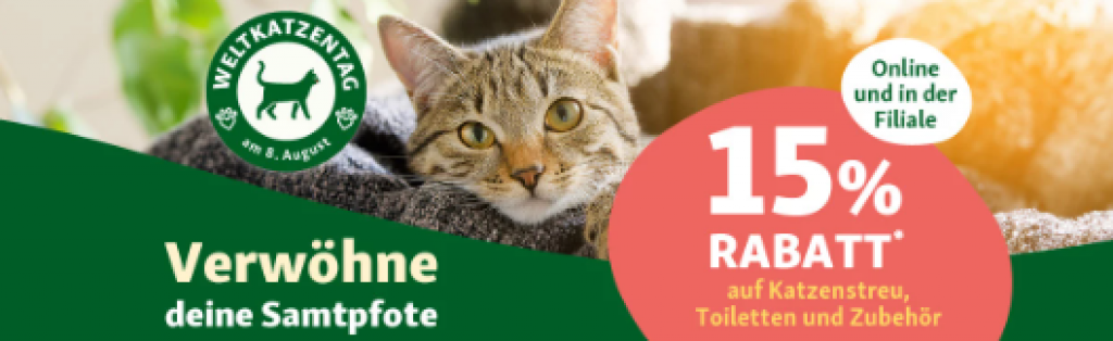 Bei Fressnapf gibt es anlässlich zum Weltkatzentag bis zum 13.08.2023 eine kleine Rabattaktion. Und zwar gibt es 15% Rabatt auf Katzenstreu, Toiletten und Zubehör. Um den Rabatt zu aktivieren, müsst ihr im Warenkorb den angegebenen Gutschein aus dem Deal eingeben oder den Button „Jetzt Gutschein aktivieren“ anklicken.