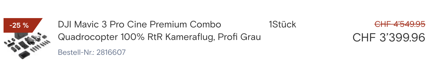 Z.B. DJI Mavic 3 Pro Cine Premium Combo Quadrocopter zum Bestpreis von 3399.95 Franken.