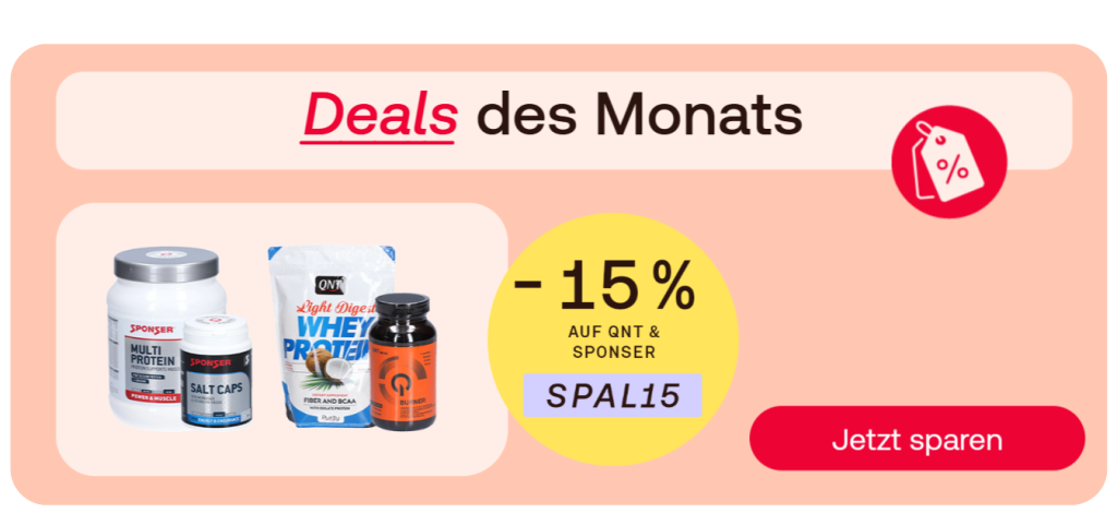 Bei Redcare APOTHEKE gibt es aktuell 15% Rabatt auf ausgewählte Produkte der Marken Sponser und QNT. Dafür einfach den Gutscheincode SPAL15 im Warenkorb eingeben – ein Mindestbestellwert ist nicht erforderlich. Der Rabatt gilt ausschliesslich auf Artikel der genannten Marken und kann nicht mit anderen Aktionen kombiniert werden. Eine Gültigkeitsdauer ist nicht bekannt, also lohnt es sich, zeitnah davon zu profitieren.