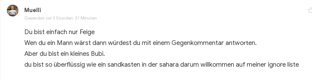 Die Nachricht würde ich den Admins melden, solche Beleidigungen gehen gar nicht.