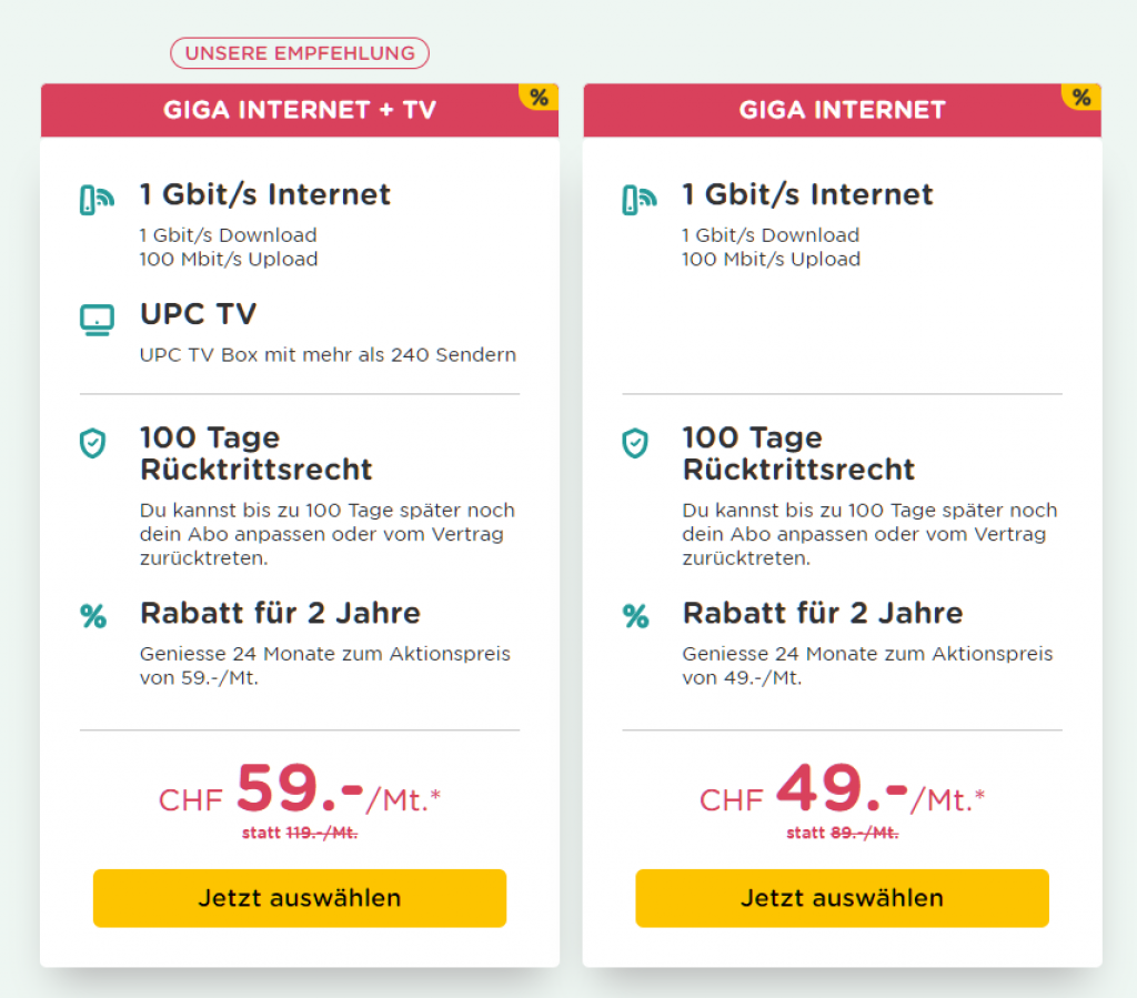 - 1Gbit/s Internet für CHF 49.- im Monat