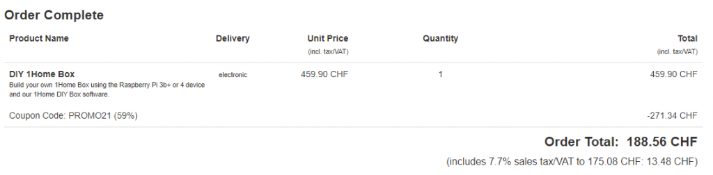 Ich habe mir das DIY Box Paket gegönnt (dafür benötigt man noch einen Raspberry Pi) für umgerechnet 188.56 CHF: