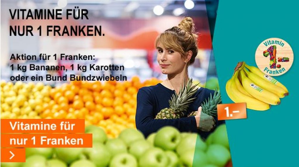 Ab Dienstag gibt’s neue Vitamine für 1.- bei der Migros. Es gibt 1kg Rüebli, 1kg Bananen oder 1 Bund Bundzwiebeln. Wie jede Woche gilt: Die Angebote sind extrem beliebt, am besten geht man nach Möglichkeit am Morgen einkaufen, da gegen Nachmittag die günstigen Vitamine oft bereits ausverkauft sind.