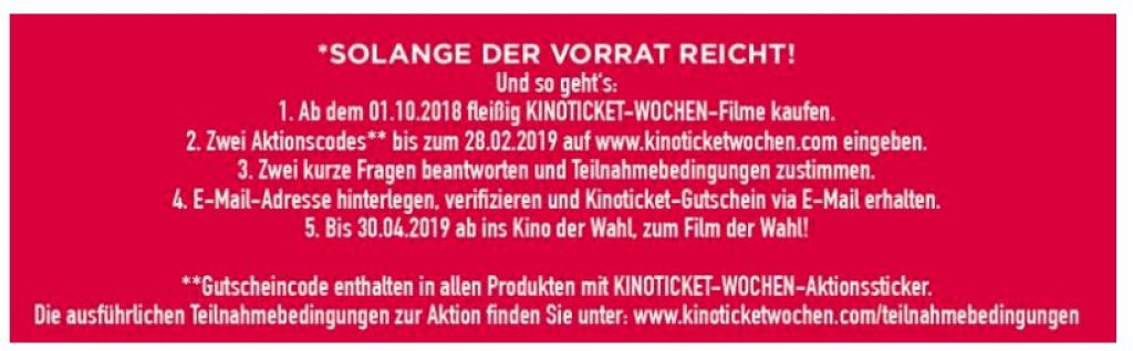 Die Kinotickets sind einlösbar bei Pathe, Kitag und Arena.