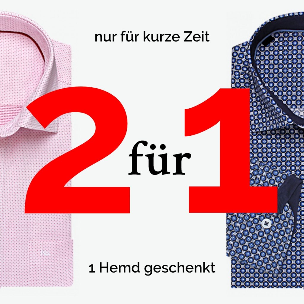 Super Angebot vom Schweizer Hersteller für Herren-Hemden: 2 Hemden aus dem aktuellen Sortiment zum Preis von einem!