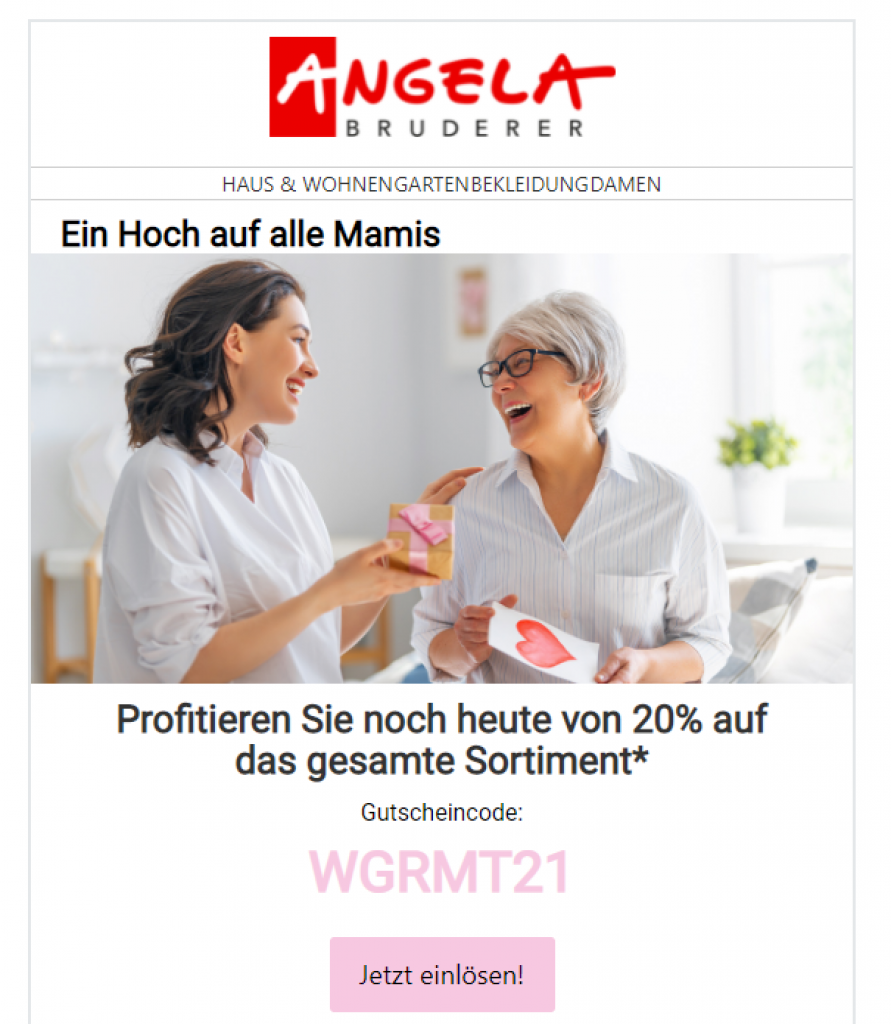 Bei Angela Bruderer gibts nur noch heute 20% ab CHF 120.-.