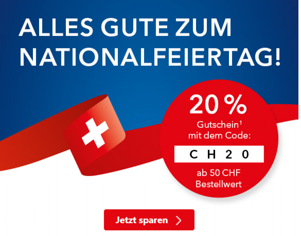 Gutschein gültig auf shop-apotheke.ch/de ab 50 CHF Mindesbestellwert. Höchstbestellwert CHF 300. Nur ein Gutschein pro Bestellung. Gutschein nur einmal pro Kunde verwendbar. Keine Kombination mit anderen Gutscheinen. Keine Barauszahlung. Gültig am 01.08.2021.