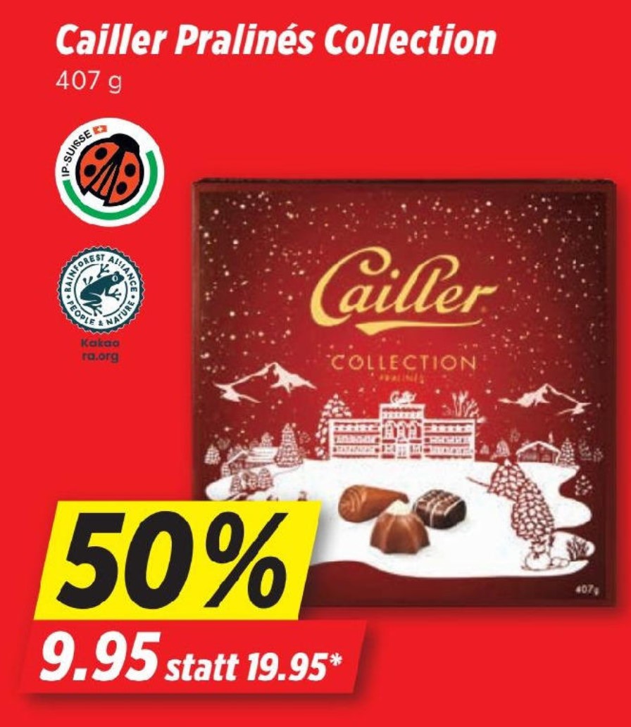 Am Wochenende erhaltet ihr auf die Cailler Pralinés Collection auch 50% Rabatt. Somit kosten die Pralinen so CHF 9.95 statt CHF 19.95