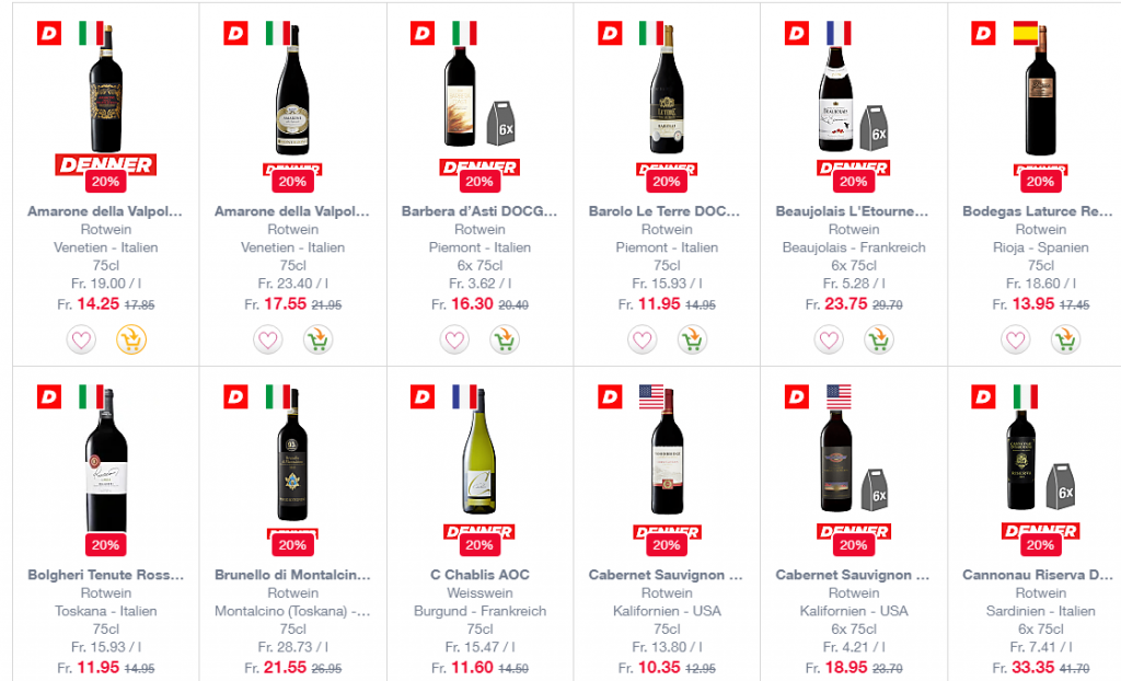 Bis einschliesslich Samstag sind die Weine von Denner bei LeShop um 20% rabattiert.