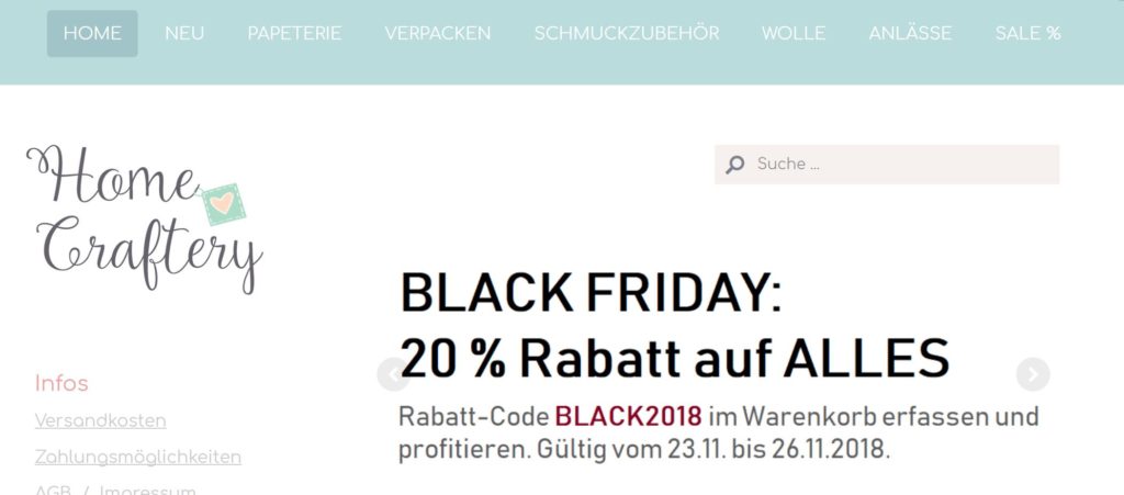 Mit dem Code BLACK2018 kann der Rabatt im Warenkorb eingelöst werden, die Seite bietet vorallem für kreative Bastelprojekte allerhand.