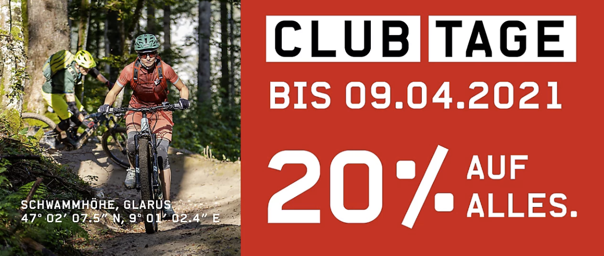 Bei Ochsner Sport erhält man momentan als Club Mitglied 20 % Rabatt auf ALLES (bis 09.04.2021).