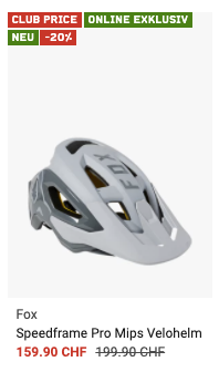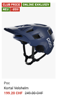 In Verbindung mit dem 20.- Newsletter Rabatt (ab Mindestbestellwert CHF 99.-) & 2% Monerio Cashback erhält man so div. Bestpreise z.B. auf Velohelme: