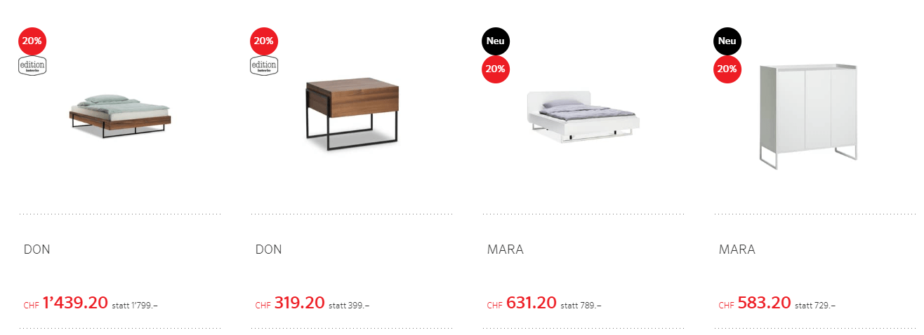 Bedeutet Betten, Matratzen, Einlegerahmen, Nachttische, Schränke, Bettwäsche, Leintücher, Duvets und Kopfkissen in allen Interio-Filialen und im Interio Online-Shop.