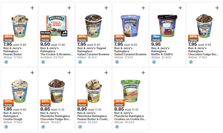 20% auf Ben & Jerry’s bei Migros-Online (eventuell auch im Laden)