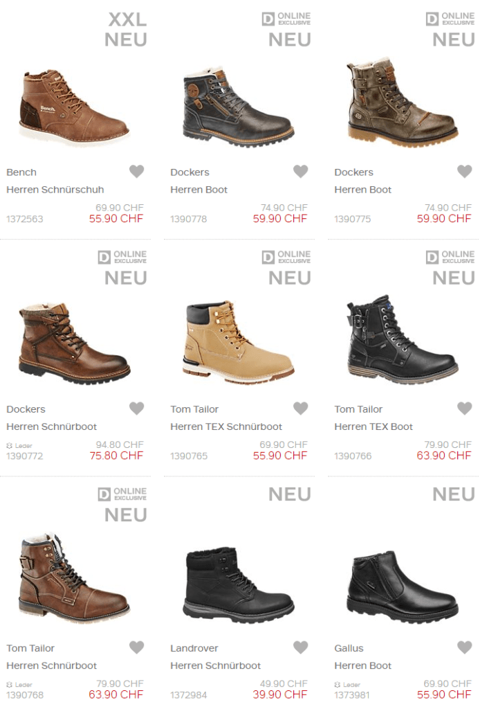 Bei Dosenbach gibt es heute 20% auf alle Boots in der Damen und Herren Abteilung.