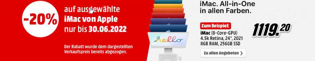 Diese Woche gibt es bei MediaMarkt Diverse iMacs und Macbooks zu neuen Bestpreise.