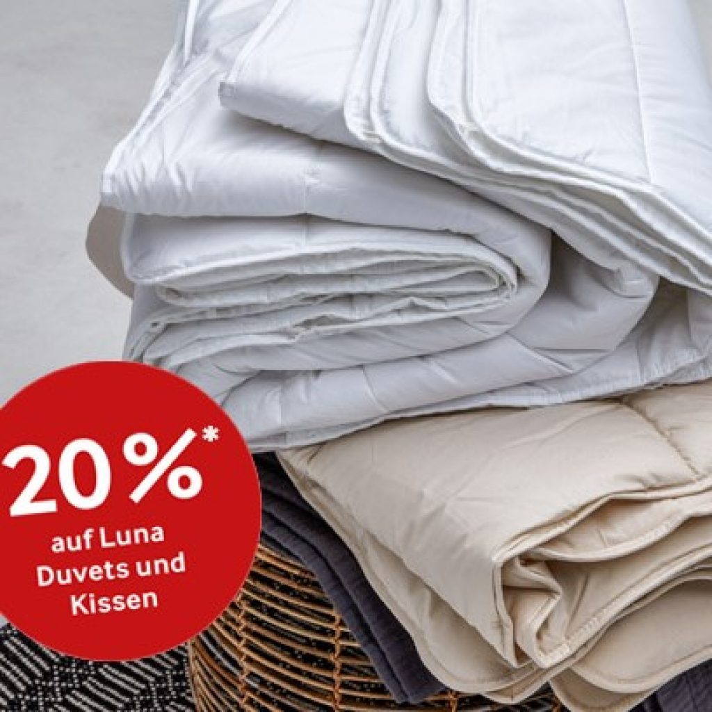Pfister möchte dir aktuell den Übergang in die kalte Jahreszeit erleichtern! Daher bekommst du einen Rabatt von 20% auf alles Duvets und Kissen von der Marke Luna. Diese Aktion läuft noch eine ganze Weile, du hast bis einschliesslich 22. Oktober Zeit zu bestellen.