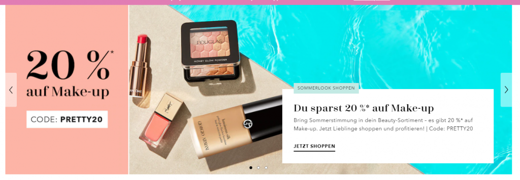 Mit dem Gutscheincode PRETTY20 erhält man 20% Rabatt auf Make Up. Der Code muss im Warenkorb eingegeben werden.