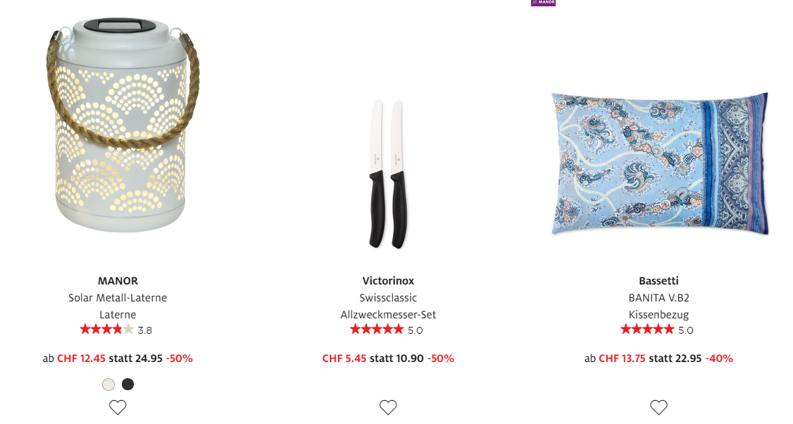 Nur heute am 09.08. erhält man bei Manor mit der ManorKarte 20% auf bereits reduzierte Artikel.